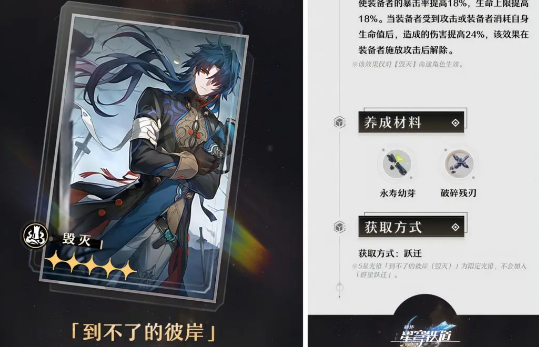 1、到不了的彼岸是五星限时光锥,能够提升装备者的暴击率和生命上限。
