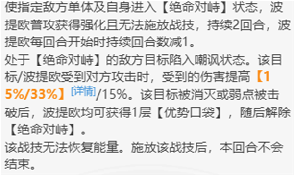 2、开始分析强度。作为巡猎角色首先肯定要保证对单的强度。先看这个小技能,就是互相嘲讽,让对方受到伤害增加,然后会有个优势口袋的特效。