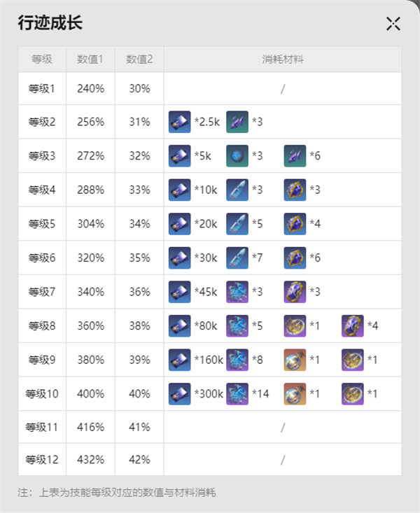 1、先来看看角色本身和行迹所需要的突破材料。这边只列举了一个行迹。