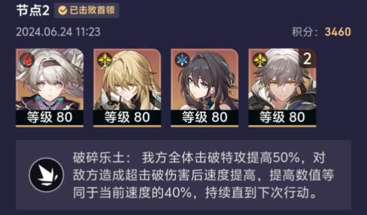 下半真的很适合超击破队,流萤,同谐主的e和罗刹(加拉赫我没练,应该效果更好)的大都可以帮助你快速破韧,而破韧后又可立马回满能持续输出。银枝破韧后,流萤基本开两次大就可以秒掉,非常爽快~不过这个队伍刚需阮梅和同谐主,队伍不多的萌新还是非常推荐培养的。