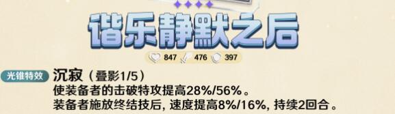 崩坏星穹铁道谐乐静默之后怎么搭配?崩坏星穹铁道里面现在一些人都看到出了谐乐静默之后这个新四星的光锥了,那么就需要知道下这个光锥可以搭配的角色了,还有光锥的具体强度,那么大家要是好奇的话下面一起来看看吧!