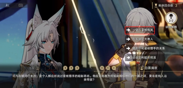 2.第二回合:选择谈判策略里面【情绪调动】,再选择【我曾见过丹恒本人】,即可直接谈判成功。