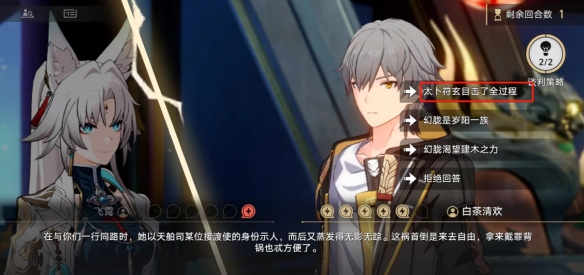 3.第三回合:如果第二回合没有选择情绪调度会进入第三回合,选择【太卜符玄目击了全过程】,即可完成谈判