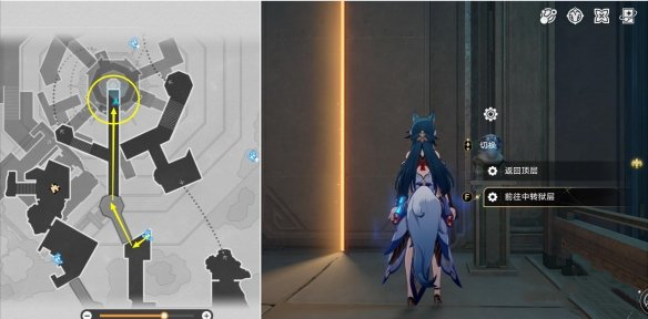 1、首先玩家打开地图前往幽囚狱-1层,乘坐电梯前往中转狱层。