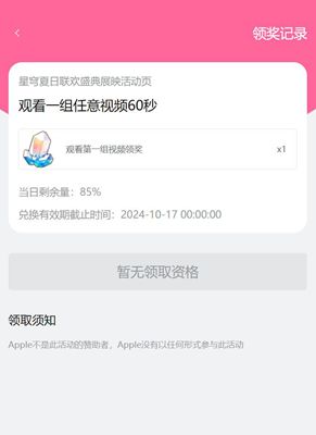 1、进入活动主页,观看相应的视频获取兑换资格,然后在点击兑换按钮。