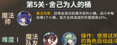 《崩坏:星穹铁道》开拓友谊魔法第5关舍己为人的桶这一关的挑战难度相对较高,玩家需要手动释放角色战技和终结技,有很多小伙伴对此还不太清楚,接下来就让小编为大家介绍一下吧。