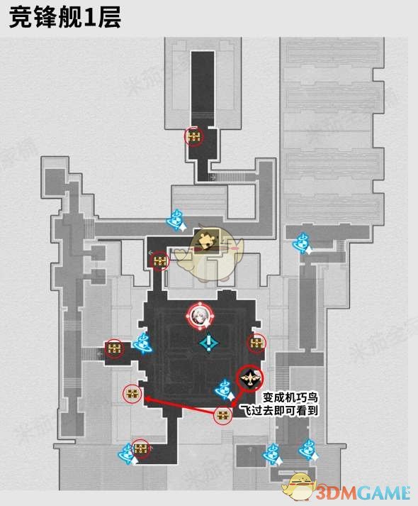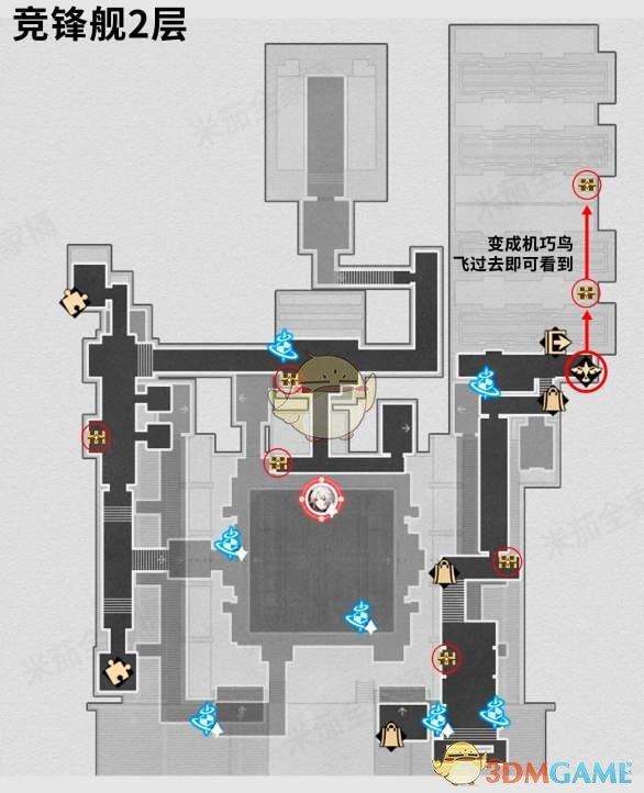 2、竞峰舰3层宝箱位置参考下图所示: