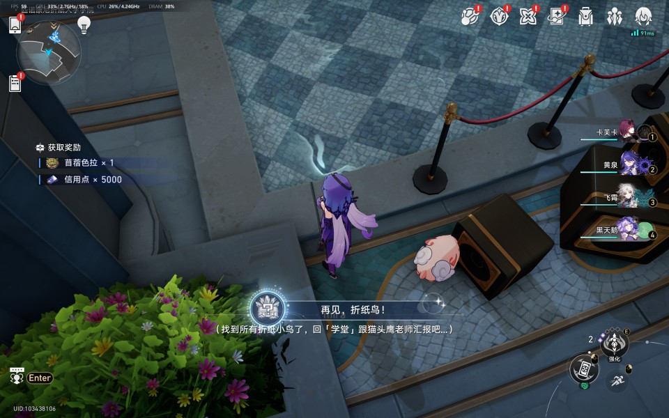 2、跟随指引前往猫头鹰老师的学堂,到达后提交折纸小鸟即可获得奖励