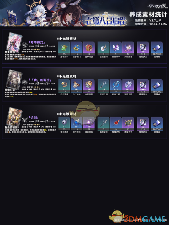 以上就是小编带来的《崩坏:星穹铁道》V2.7上半角色/光锥养成素材一览,更多相关游戏攻略,请关注手游网。