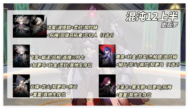 以上就是小编整理带来的崩坏星穹铁道2.6混沌12上半场通关攻略,更多相关游戏攻略,请关注手游网!