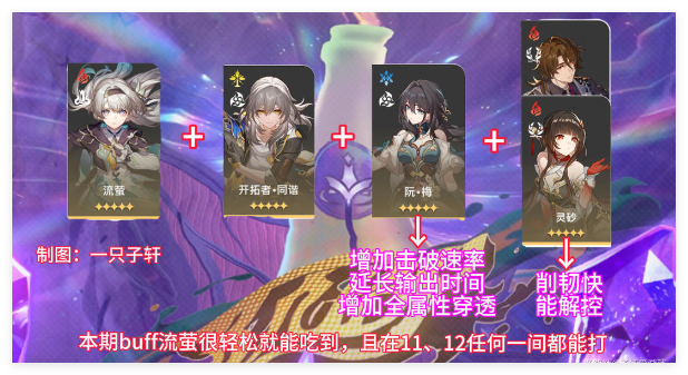 ①:流萤+同谐主+阮梅+加拉赫/灵砂(闭眼自动随便打);