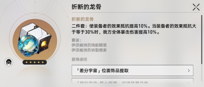 1、折断的龙骨:可以给队伍提供爆伤加成,任何辅助位和生存位都可以带。