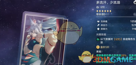 2、被动可使装备者的暴击率提升20%,装备者的忆灵在场上时,装备者和忆灵造成的伤害会提升36%。
