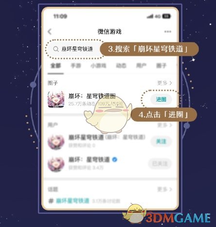 2、接着搜索“崩坏星穹铁道”,进入官方游戏圈;