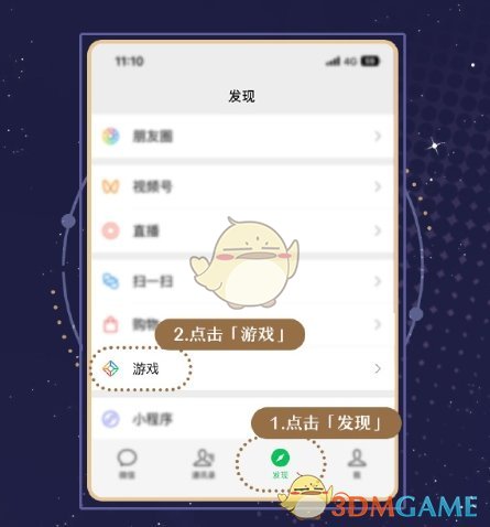 1、首先打开微信,点击导航栏中的发现- 游戏;