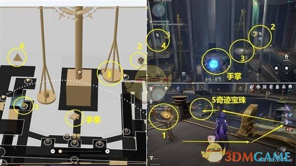 然后,退出并从1号位置右侧下去,前往下方中间位置的【5号奇迹宝珠】位置,开启【5号奇迹宝珠】。