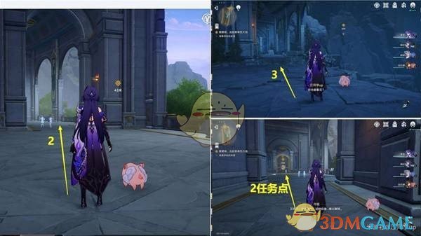 然后,前往开启下方的2号机关,挡在3号任务点路上的石球将被移开,这样就能到达3号任务点继续前进。