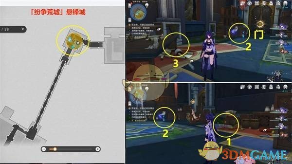 在任务进行到【荒墟啊,可曾记旧日荣光--继续前进,探索悬锋城】时,您只需通过1号位置的开关来打开位于2号位置的门即可。