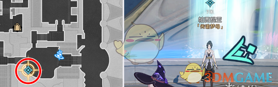 5、返回广场中心,召唤迷迷,并跟随它前进。