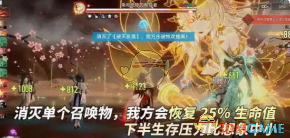 3、打法介绍:开局两侧会分别召唤破灭/丰饶玄莲,注意使用对应元素进行消除。