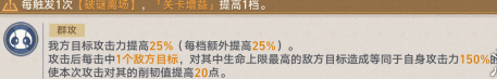 2、关卡增益:该关卡增益同样利好群体攻击,根据我方每次攻击的目标数,对生命上限最高的敌方目标额外造成高额伤害及附加削韧。