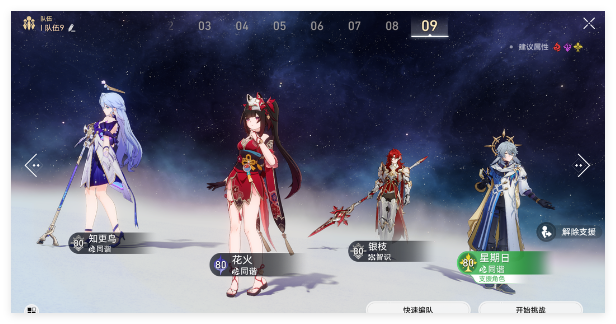 这里「银枝 」这里为压血角色,可以替换为任意非火、雷、虚数的非追击C,如果弱点正确则还需要控制击破伤害,容易一下弄死,不利于「星期日 」补刀。