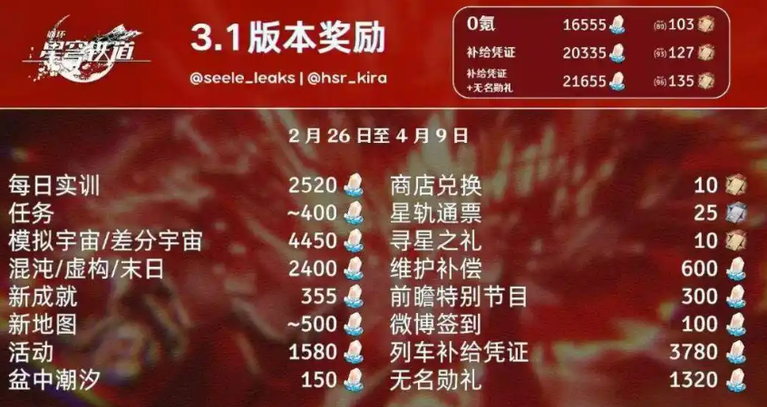 当然了,除了新角色和新buff外,3.1版本也有很多值得参与的活动,特别是晨昏卷隐活动,它将在2月14日上线。这次活动的奖励可是超级丰厚的,包括500星琼和大量的遗器残骸,简直是氪金党的福音。如果你还在犹豫要不要参加,只能说赶紧的,错过了可就要等很久。