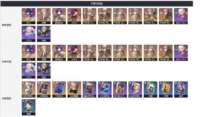 1、用于角色晋阶和行迹升级