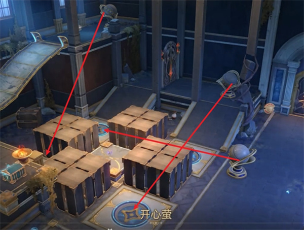 第三阶段:最终打球挑战(解锁战利品 7~9) 最后阶段谜题复杂度略有提升,需要你使用机关将球多次反射并调整节奏,根据下图解密: