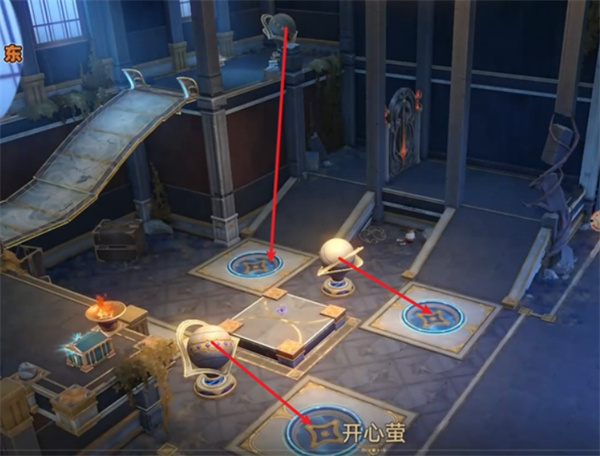 第二阶段:进阶解谜+预言算碑机关(解锁战利品 4~6) 第二阶段需先完成打球任务,随后与预言算碑互动; 解锁方式为完成路径拼接,成功后自动激活场景中隐藏电梯; 进入下层区域后可找到战利品4、5、6.