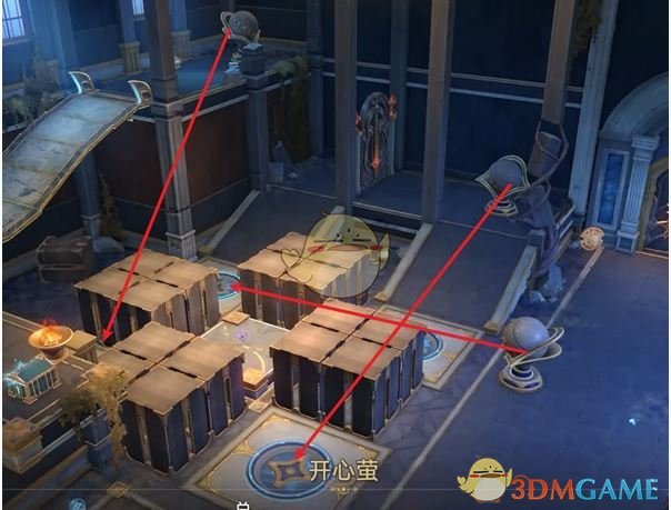 3、二阶段打球解谜,完成预言算碑解锁电梯,成功后,开启4-6号战利品。