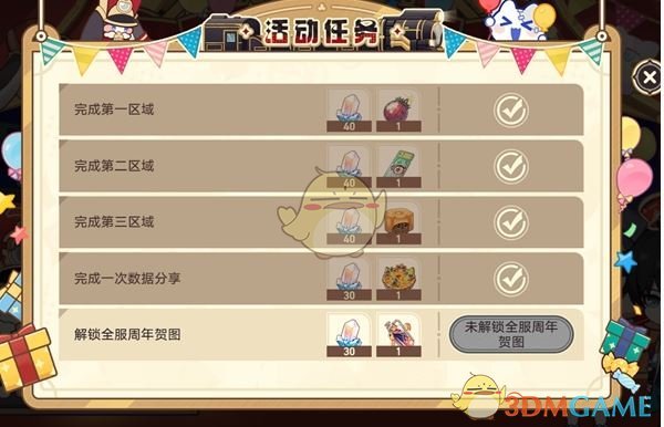2、累计完成三个区域的「开拓报告」后,可启动「星弯过山车」,与角色一起点亮周年贺图的专属坐标。