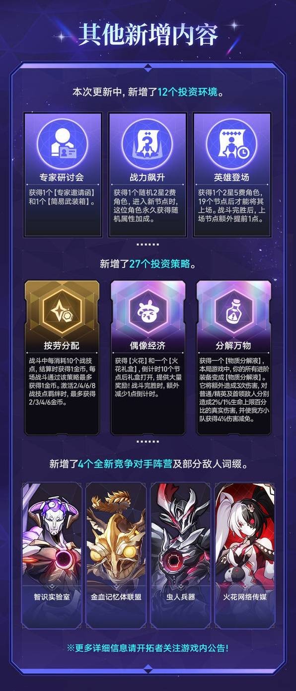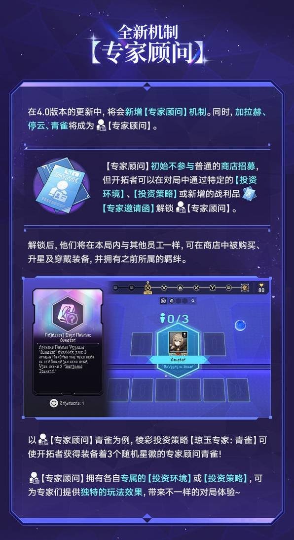 崩坏星穹铁道4.0版本更新后,[货币战争-零和博弈]玩法迎来了首次扩充,本次更新中新增了三位新角色,全新机制[专家顾问]正式实装,并对各羁绊和角色进行了平衡性调整。那么货币战争的更新内容有哪些呢?下面一起看看吧。