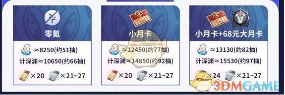 2、大月卡:680-880星琼、4星轨专票、5星轨普票。