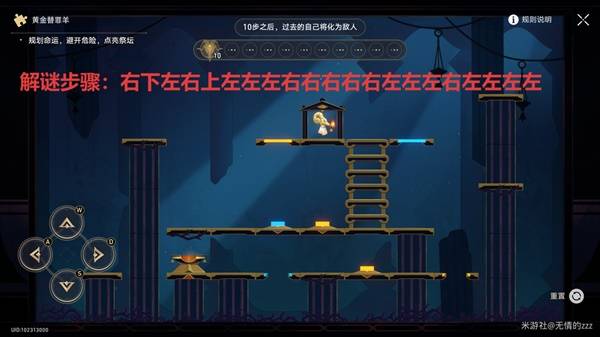 3、解谜步骤:右下左右上左左左右右右右右左左左右左左左左