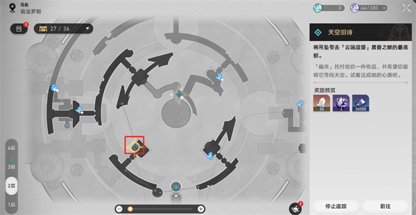 追踪任务:天空旧诗-将吊坠带去「云端遗堡」晨昏之眼的最底部,可以直接到最底层,路线上是会路过成就涉及的罗盘