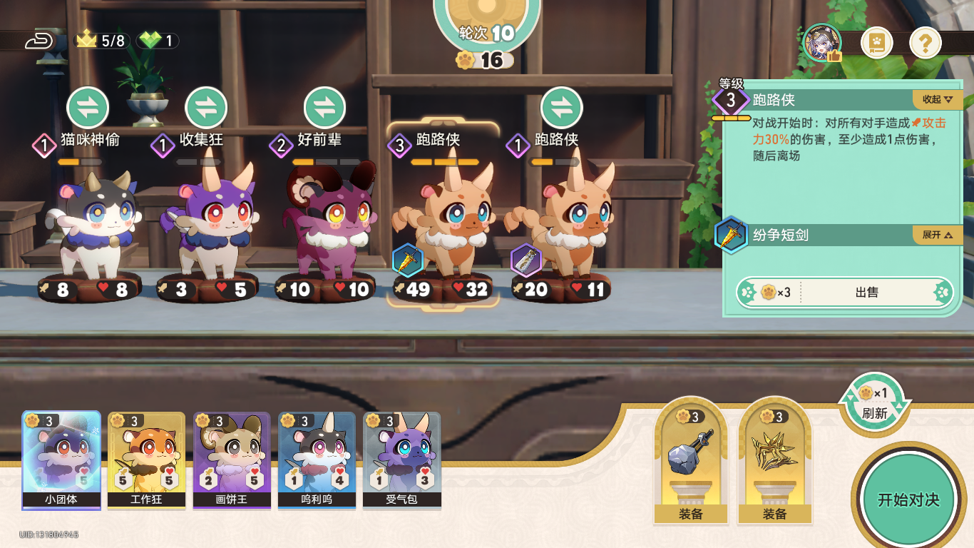 阵容二(通解阵容):猫猫的【猫咪神偷】、【收集狂】、【好前辈】(核心BUFF)、【跑路侠】(核心输出)*2