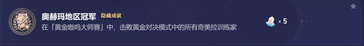 崩坏星穹铁道奥赫玛地区冠军成就怎么获取,本期给大家带来的是3.8版本旅情事记活动【黄金嗷呜大师赛】成就,【奥赫玛地区冠军】获取方法,成就需要在挑战赛里面击败所有的黄金裔,希望可以帮助大家快速拿到成就。