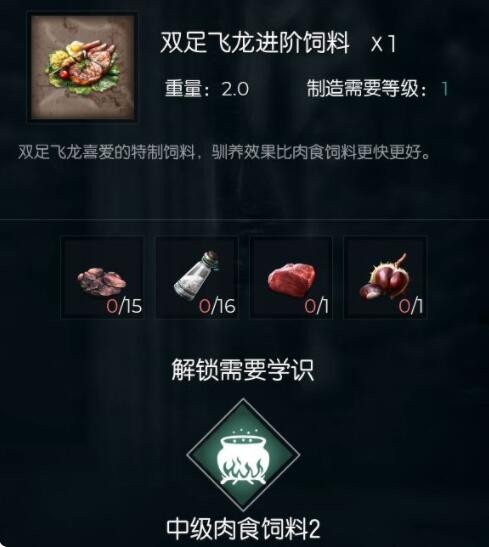 双足飞龙:肉饲料:675 盐:270 长角顿面犀肉排:45 板栗:45