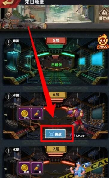 2、在当前层数中点击”挑战“