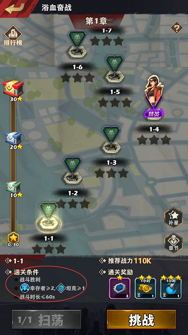 6、星级条件只能依次完成,不能跳过条件,同时满足1、2星的情况下才能完成3星的条件