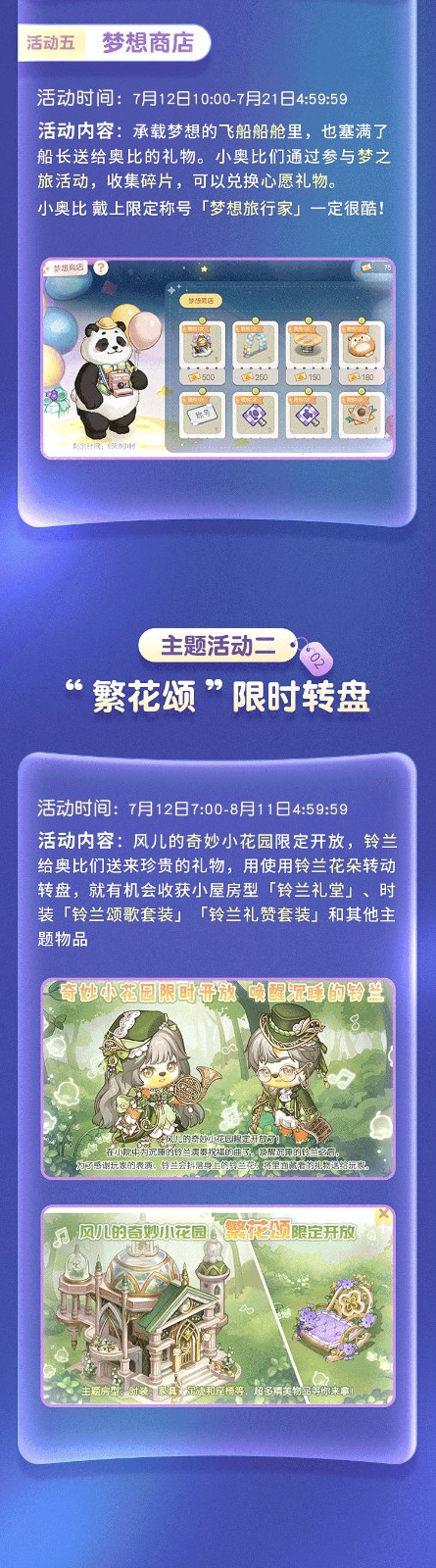 《奥比岛:梦想国度》是一款重温经典的经营换装游戏,游戏2022年7月12日也就是今天全平台正式上线了,为了欢迎各位小奥比的到来,岛务厅特别举办了“梦之旅”开服庆典活动,接下来就让小编给大家带来《奥比岛:梦想国度》开服庆典活动大全,感兴趣的小伙伴们一起来看看吧。
