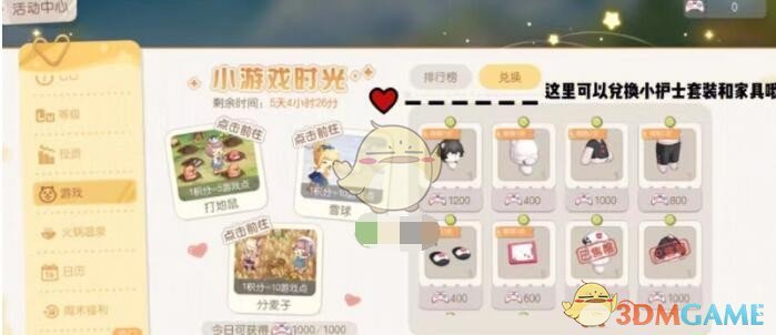 1、获取:【小游戏时光】点数可以通过参与各种小游戏获得,每天上限是1000分,消耗游戏点数可以兑换奖励。
