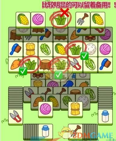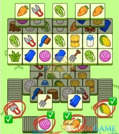 1、首先我们将上层的图案消除,这样就清楚后排的卡牌了;
