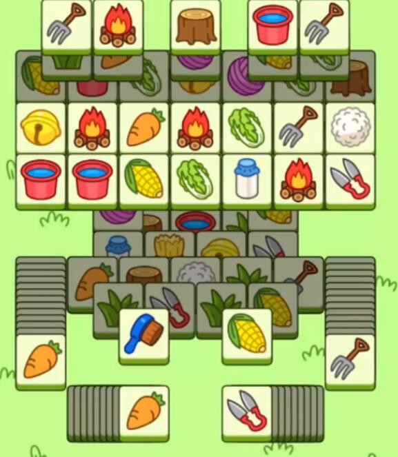 2、同层可以三消的就先消除同层,没有的话就需要查看下一层的物品,然后将需要的物品的上方的道具放置到槽中获得下方的道具。
