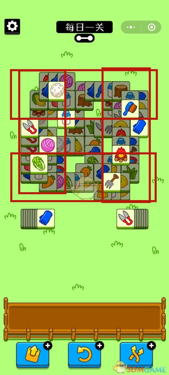 3、因为牌是一张叠着一张,咱们就要看四个方位底下的牌有没有合适的,然后利用盲盒的牌进行消除,这一次我们盲盒的牌可以相对留一点下来,以备不时之需。