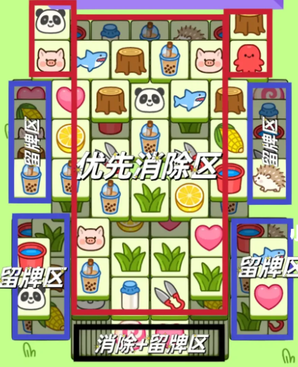 4.蓝色区域中前期尽量保留,后期再配合消除,努力每次都能和叠加区做消除,后面可以配合道具打乱顺序消除