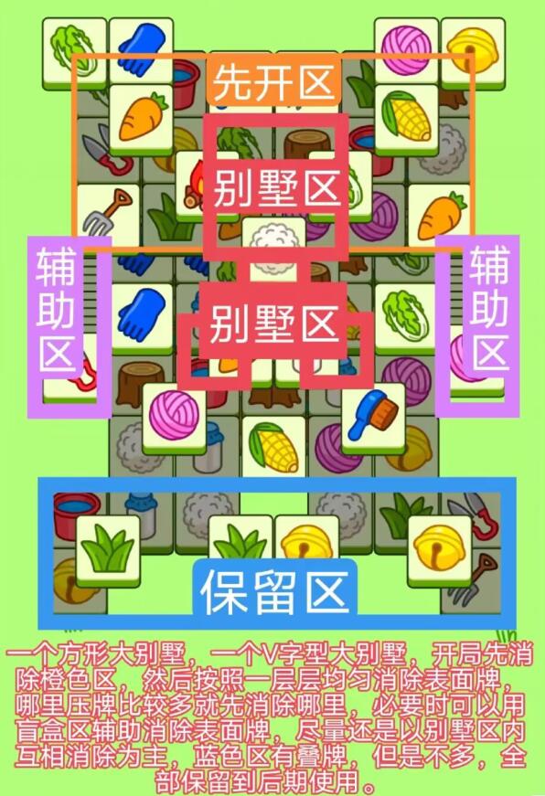 3.必要时可以用紫色盲盒区辅助消除,盲盒区后期不用留太多,留几张备用即可。
