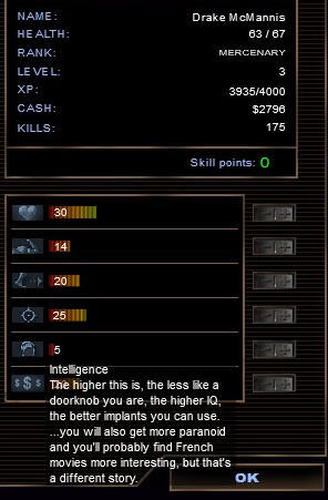 *智力越高,你所能使用的植入体就越好。同时你也会越多疑....也许你会对法国电影更感兴趣,不过那是另一个故事了。