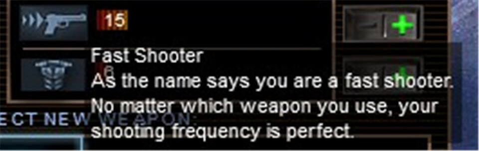 在该模式中,删去了原版的力量、与智力两个属性,取而代之的是特殊技能“快枪手”、“自卫”两个技能;特长技能默认为“自愈”且无法更改。